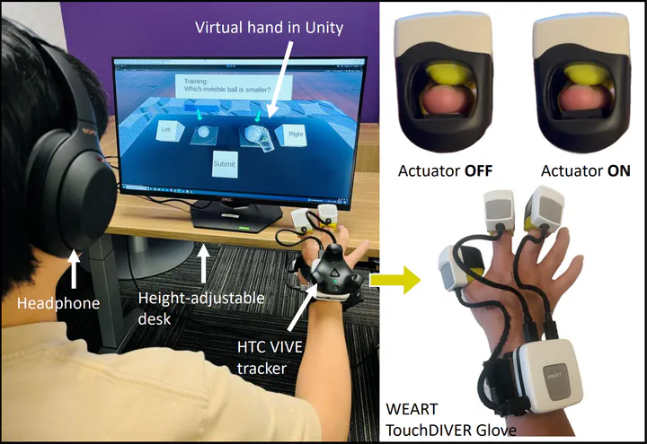 Unity Scene in Active TouchWearable haptic gloves have the potential to greatly enhance active touch experiences in virtual reality (VR). However, it remains unclear how well people can interpret glove-enabled virtual touch experiences when experienced passively (for example, when they passively view a virtual hand perform autonomous actions while also feeling what the virtual hand feels via a haptic glove). Such a βhaptic replayβ scenario could enable people to share, revisit, or demonstrate touch-critical experiences, including medical palpation or fine manipulation of tools.